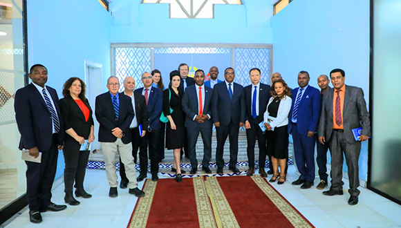 המשלחת הישראלית עם שר החוץ האתיופי תאוודרוס גברה-יסוס. (צילום: דוברות גדי יברקן)