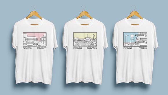 כדי לחבר את הסטודנטים החדשים לאווירת הלימודים ולהתחיל את שנת הלימודים בצורה קצת אחרת, חברה האוניברסיטה לסטודיו לעיצוב ג'לאדה, שעיצב מיני קולקציה ייחודית של חולצות טי-שירט, בהשראת הסלוגן של האוניברסיטה – "בעקבות הלא נודע". הרעיון מאחורי העיצובים – אם אינכם יכולים להגיע לאוניברסיטה, הפכו את העיר לאוניברסיטה שלכם. בכל עיצוב יש הומאז' לפינה אייקונית אחרת בעיר תל אביב.