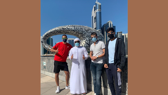 כך הכל התחיל. אולג בן אבי (שני מימין) עם ידידיו האמירתים מאוניברסיטת דובאי